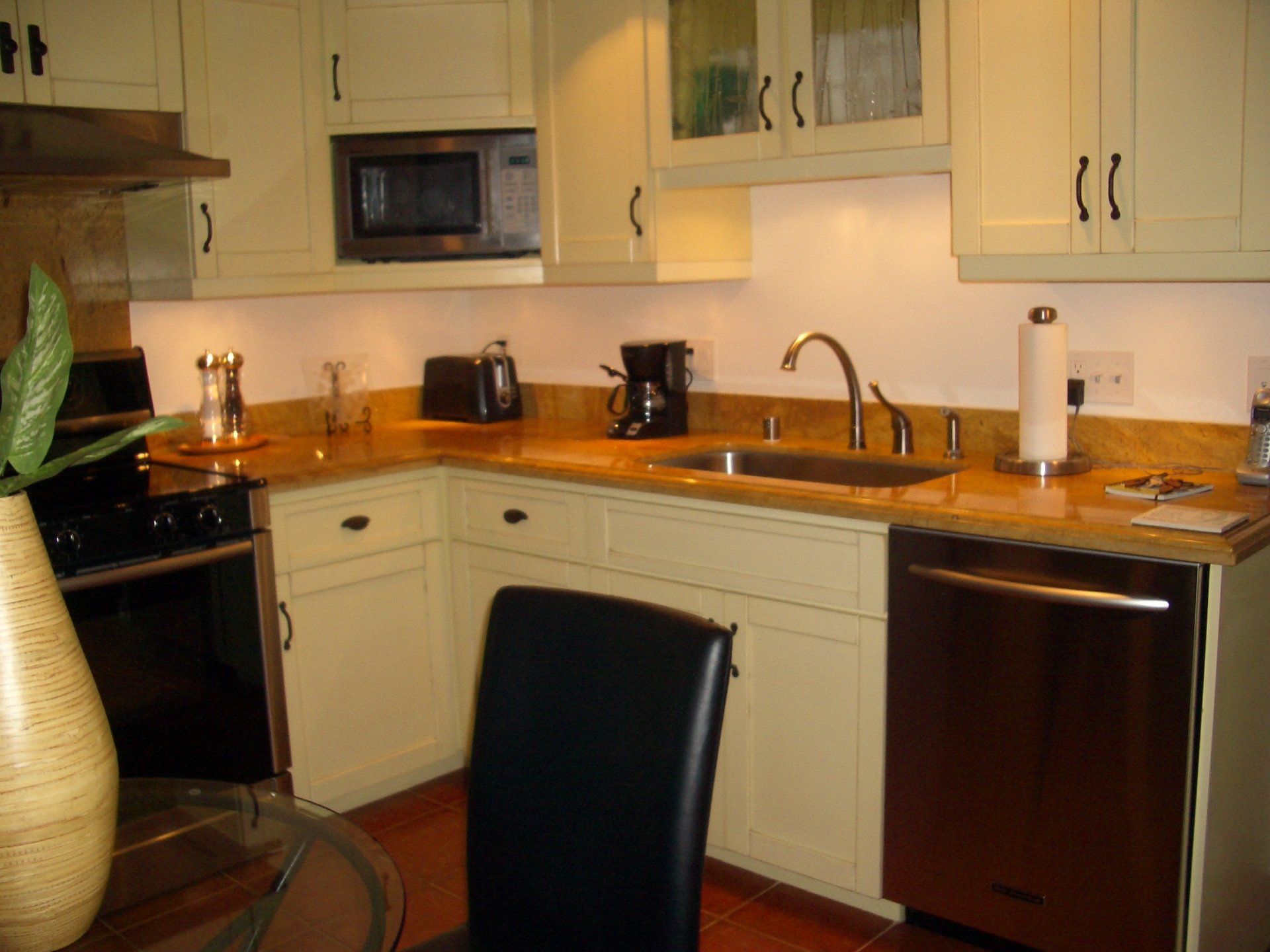 - Kitchen: Stainless steel appliances. Granite countertops. Custom cabinets.